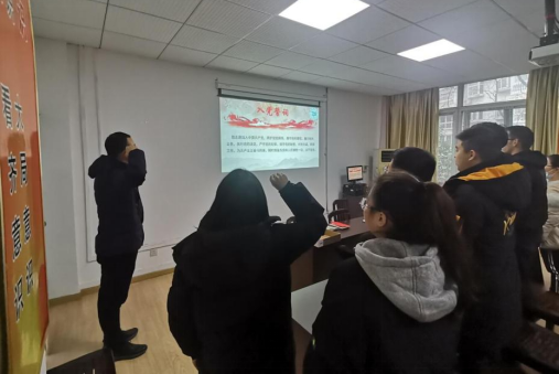 2021年12月24日上午,化环学院研究生党支部在会议室306召开了支部新发展党员入党宣誓活动,全体党员举起右拳,铿锵有力地宣读入党誓词。