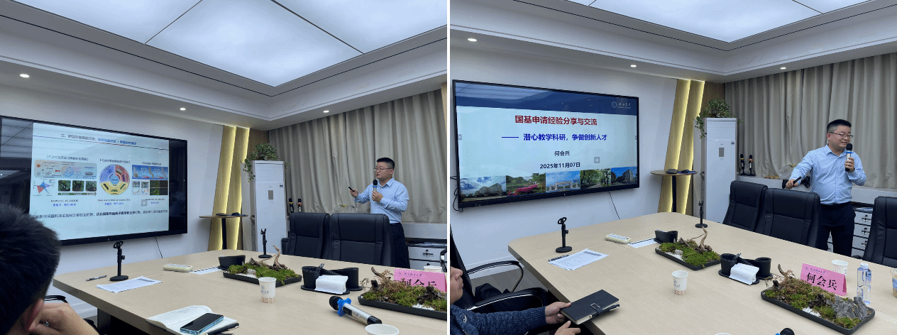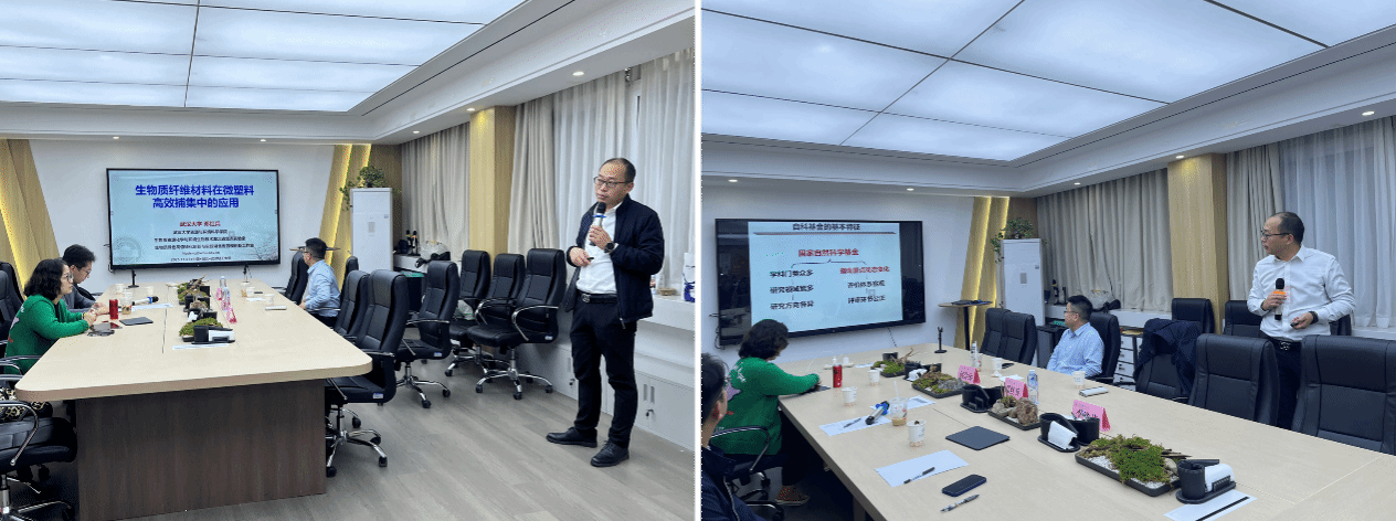 会上,邓红兵教授和何会兵副教授分别作题为《农林废弃物生物质纤维材料》、《走进“锌”时代:水系锌电池关键材料及界面化学》的学术报告;随后,两位专家分别进行国家自然科学基金申报辅导讲座,针对项目选题、关键科学问题凝练等进行详细讲解,并针对国家自然科学基金申报书各部分进行详细分析并指出注意事项,并结合其团队近年申报国家自然科学基金的经验,就如何厚实研究基础进行分享。报告结束后,与参会教师就撰写项目申报书的过程中存在的问题进行了详细探讨。