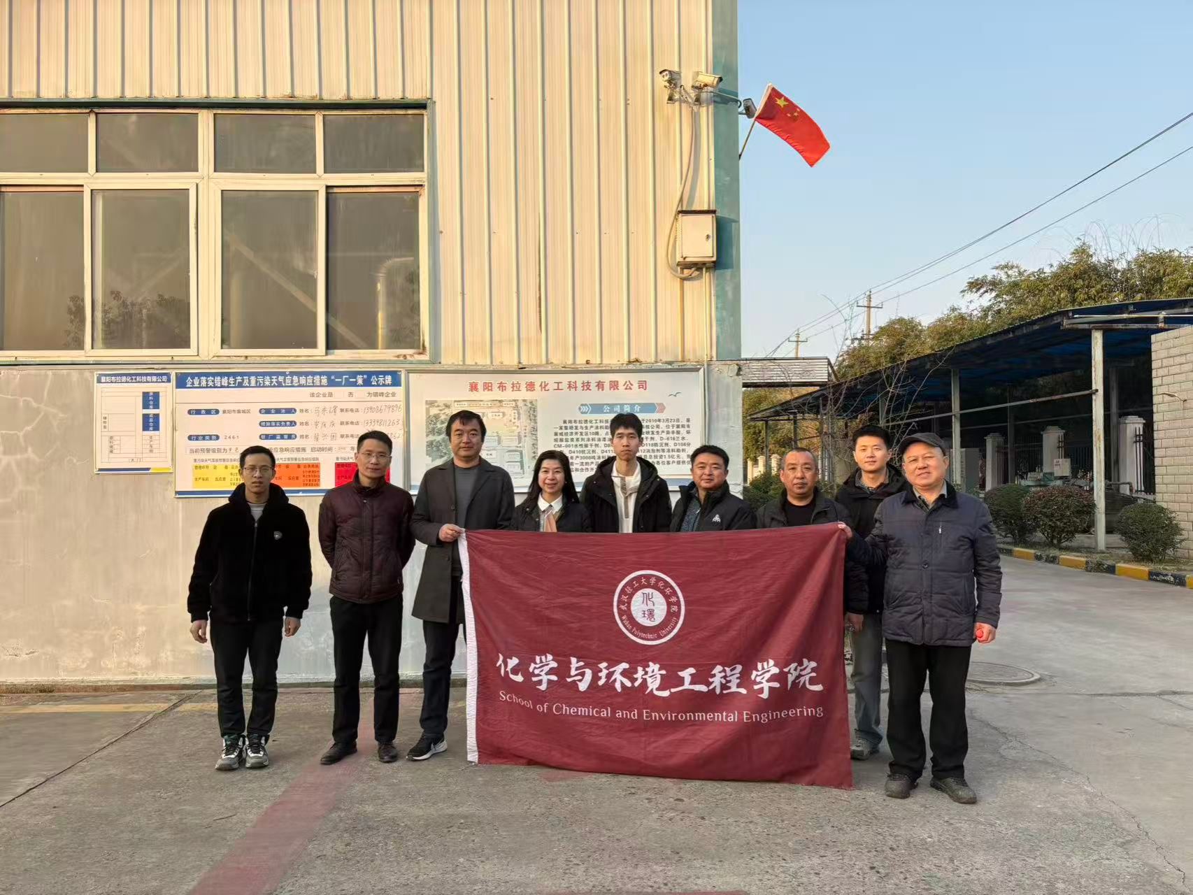 为深化校企合作,拓宽毕业生就业渠道,加强与校友企业的联系,12月5日,我校化学与环境工程学院党委书记于雪、党委副书记黎操一行赴湖北省襄阳市,实地走访了湖北荆洪科技股份有限公司、襄阳布拉德化工科技有限公司、湖北天斌机械有限公司三家校友企业,开展访企拓岗促就业专项行动。
