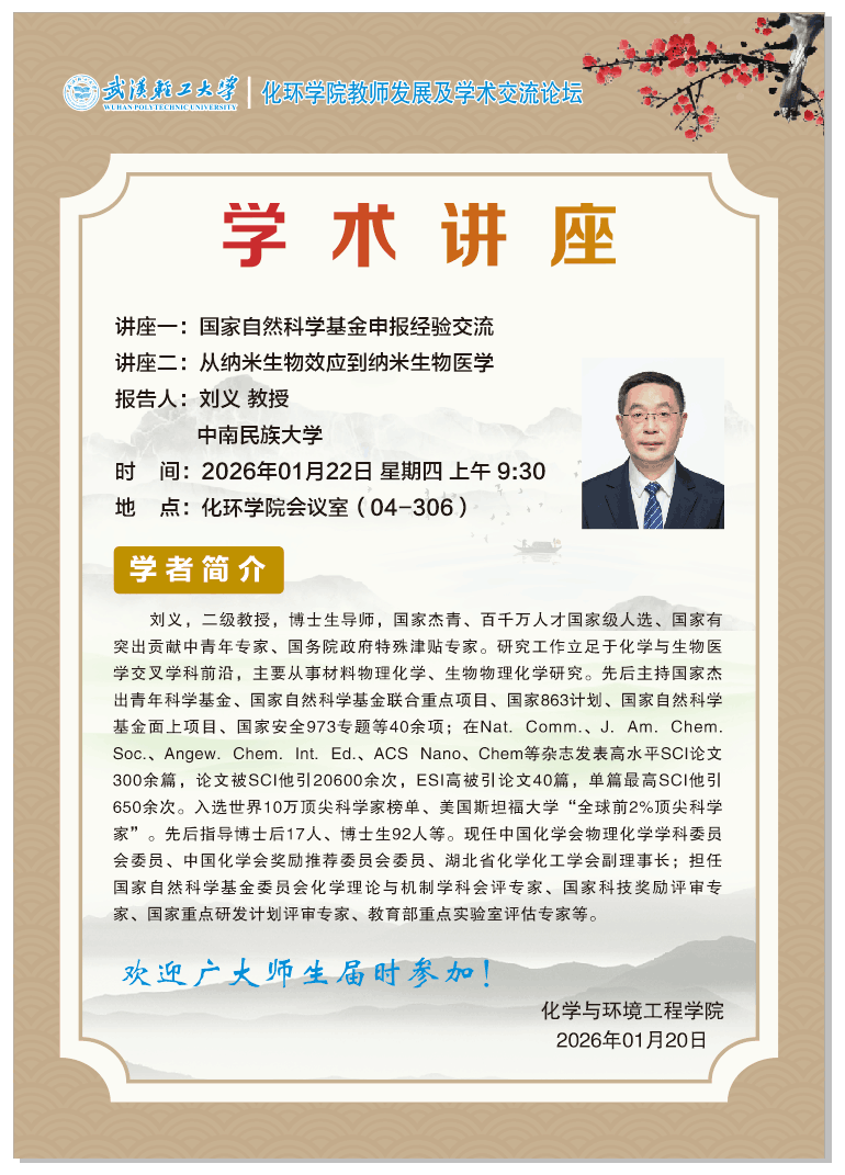 国家自然科学基金专题讲座暨“化环学院教师发展及学术交流论坛”系列活动(十六) | 刘义:从纳米生物效应到纳米生物医学