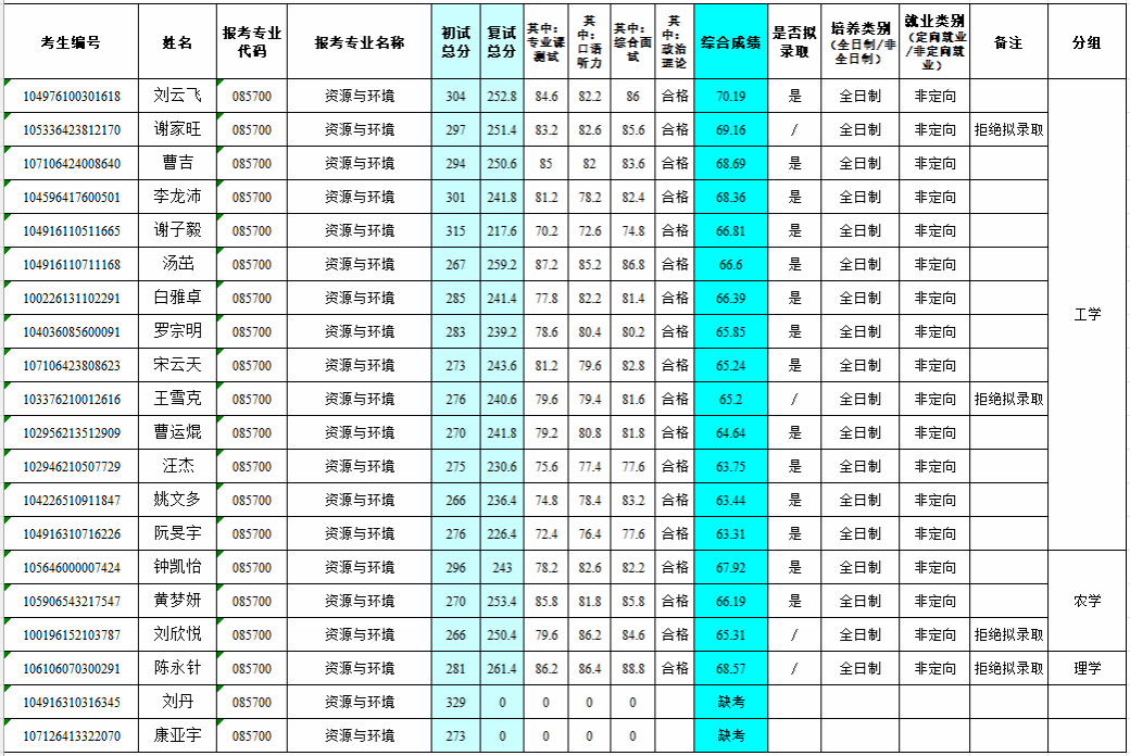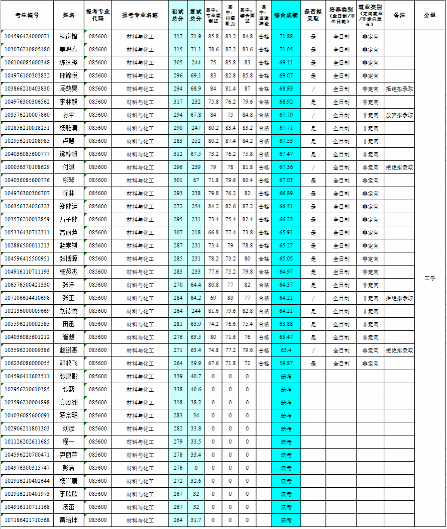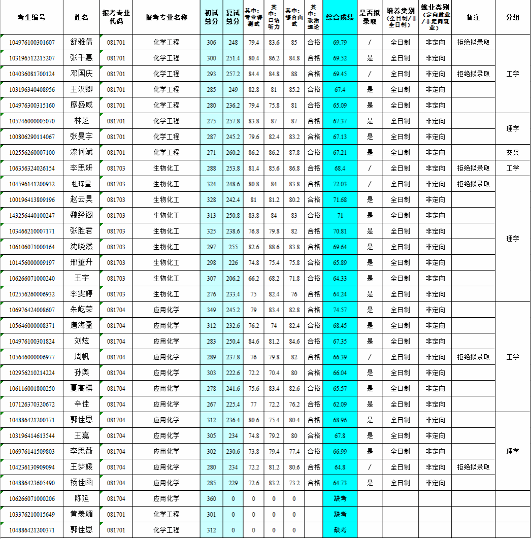 2026年化学与环境工程学院研究生调剂复试成绩及拟录取名单公示(最终以学校公示为准)