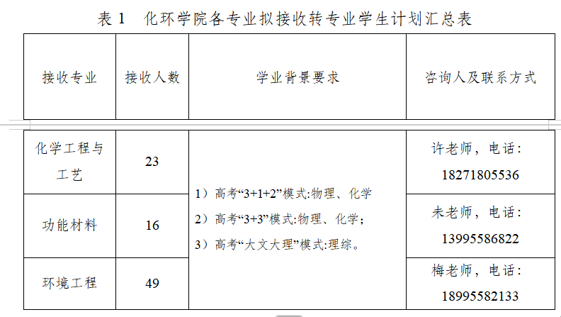 化环学院将对拟转入的学生进行资格审核,并组织面试,面试时间和地点另行通知。化环学院各专业拟接收转专业学生计划汇总如表2。
