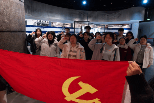 自由参观结束后,在庄严肃穆的氛围中,全体人员在党旗前整齐列队,由党支部副书记牛铭领誓,重温入党誓词,铿锵誓言彰显初心使命。