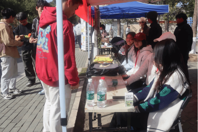 2025年11月27日,活动前期,化环学院青年志愿者协会通过发放宣传海报、摆放宣传立牌等形式,广泛普及活动相关信息,扩大活动知晓范围。活动期间,志愿者团队全程提供服务,主动问候过往群众,耐心解答各类咨询。服务点设置丢水瓶互动游戏,吸引群众参与,志愿者在游戏过程中,向参与者普及衣物保护与整理的相关知识,传递“闲置衣物亦是爱心,长期善举更暖人心”的公益理念。